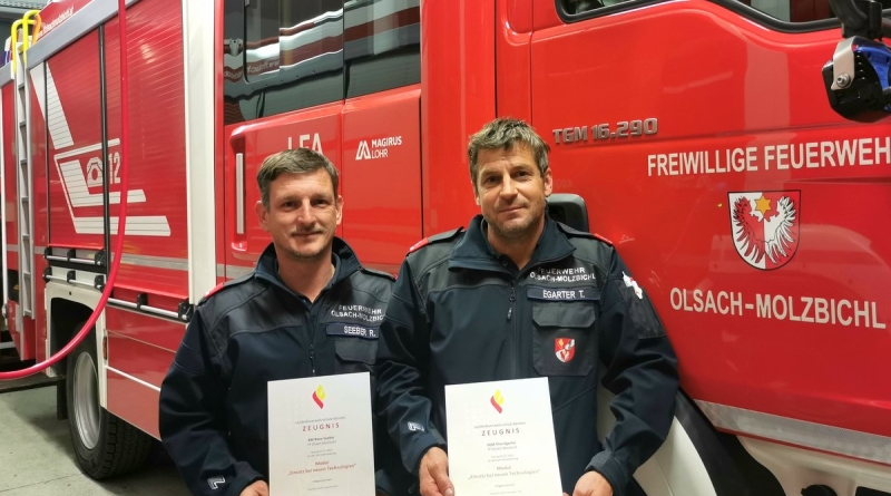 Die rasante Technologieentwicklung in den unterschiedlichsten Bereichen erfordert auch eine entsprechende Weiterentwicklung der Feuerwehr. Beispielsweise verlangen Einsätze mit Akku-Bränden, Fahrzeuge mit alternativen Antrieben, oder Photovoltaikanlagen das nötige Wissen, um zielführende Einsatzmaßnahmen einsetzten zu können. Auch der Sicherheitsfaktor und das Einschätzen von Gefahren spielen dabei eine wesentliche Rolle. Das an der Kärntner Landesfeuerschule angebotene Ausbildungsmodul „Einsatz mit neuen Technologien“, behandelt aktuelle Themenbereiche und bietet eine gute Möglichkeit am Puls der Zeit zu bleiben. Unsere beiden Gruppenkommandanten Tino Egarter und Rene Seeber haben kürzlich an dieser Weiterbildung teilgenommen und konnten viele interessante Erkenntnisse mitnehmen.