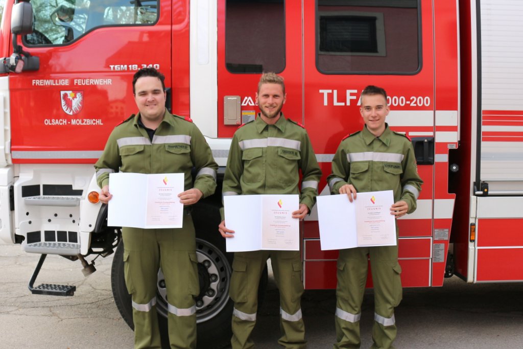 Drei Mitglieder der Feuerwehr Olsach-Molzbichl besuchten Ende April 2021 ihre erste Weiterbildung an der Kärntner Landesfeuerwehrschule. Beim Lehrgang Erweiterte Grundausbildung bekamen unsere Kameraden Stefan Kranabether, Matthias Gasser und Niklas Scheiflinger umfangreiches Wissen für den weiteren Einsatzalltag vermittelt. Zudem beinhaltet der Lehrgang die Ausbildung zum Truppführer und ist auch die Grundlage für viele weitere Lehrgänge an der Landesfeuerwehrschule. Alle drei haben den Lehrgang mit sehr gutem Erfolg bestanden. Die Kameraden der Feuerwehr Olsach-Molzbichl gratulieren recht herzlich zur erfolgreich absolvierten Ausbildung!