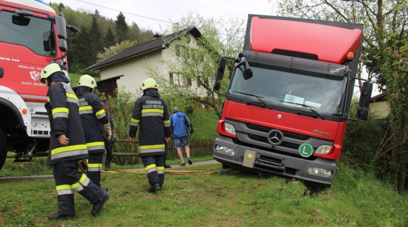 Am Dienstag, den 24. April wurde die Feuerwehr Olsach-Molzbichl um 10 Uhr mittels stiller Alarmierung zu einem technischen Einsatz alarmiert. In der Ortschaft Nußdorf war ein LKW einer Speditionsfirma in einer Böschung festgefahren und drohte abzurutschen. Gemeinsam mit der ebenfalls ausgerückten Feuerwehr Ferndorf gelang es den vollbeladenen 12-Tonner zu sichern und in weiterer Folge wieder auf die Straße zu bringen. Die Feuerwehren Olsach-Molzbichl und Ferndorf standen mit 10 Mann und 3 Fahrzeugen rund eine Stunde lang im Einsatz.
