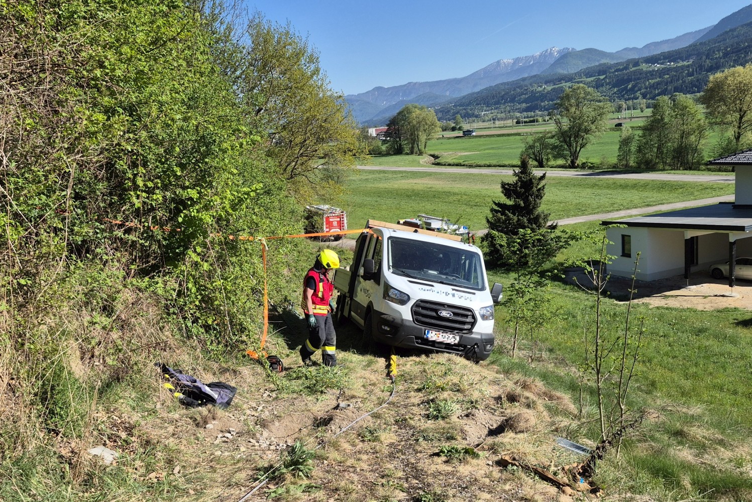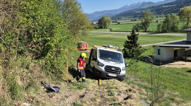 Am Samstag, dem 25.04.2026, wurde die Feuerwehr Olsach-Molzbichl am Nachmittag mittels stiller Alarmierung zu einem technischen Einsatz gerufen. In der Ortschaft Aichforst drohte ein Pritschenwagen von einem unbefestigten Verbindungsweg abzurutschen. Beim Eintreffen am Einsatzort wurde zunächst das Fahrzeug mittels Seilzug sowie mehreren Spanngurten gesichert, um ein weiteres Abrutschen zu verhindern. In weiterer Folge wurde der Pritschenwagen mittels Hebekissen angehoben, sodass die Reifen wieder Bodenkontakt herstellen konnten. Nach rund 2½ Stunden konnte der Einsatz erfolgreich beendet werden.