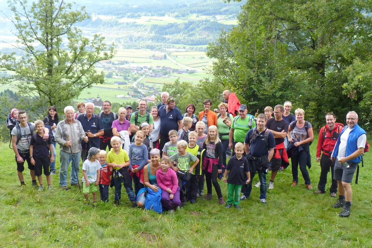 Am Sonntag, den 18. September trafen sich die Kameraden der Feuerwehr Olsach-Molzbichl mit ihren Familien zum gemeinsamen Wandertag. Auf dem Programm stand eine Sagenwanderung rund um unsere Ortschaften. Die erste Route führte von Rothenthurn auf den Burgbichl, wo uns bereits die erste Sage erwartete. Eine Gestalt trat aus dem Wald hervor und erzählte die Sage vom „Riesenspielzeug“. Die Sage handelte von den „Hadenleut“, das sind Riesengeschöpfe, welche vor langer Zeit in einem Schloss auf dem Burgbichl gelebt haben sollen. Nach der spannenden Erzählung ging es weiter Richtung Winkl, vorbei beim Egelsee zum Hochgosch. Um den Marsch etwas zu erleichtern und gleichzeitig den Kindern eine weitere Attraktion zu bieten, wurde die Strecke teilweise mit dem Traktor und Anhänger zurückgelegt. Der anstregende Aufstieg auf den Hochgosch hatte sich ausgezahlt, denn dort trafen wir Waldfee Florauna und Kobold Hermelin. Die beiden hatten für unsere Wandergruppe ein tolles, und lustiges Schauspiel vorbereitet und erzählten auch die Sage vom Hochgosch. Nach der fröhlichen Aufführung marschierten wir wieder Richtung Egelsee und legten beim Gasthof Lug ins Land einen Halt ein. Von dort ging es wieder zurück zum Rüsthaus, wo der gelungene Familienwandertag beim gemeinsam Essen seinen Ausklang fand.
